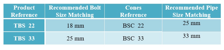Plastic cones are used on both ends of the plastic spacer tube and can easily be